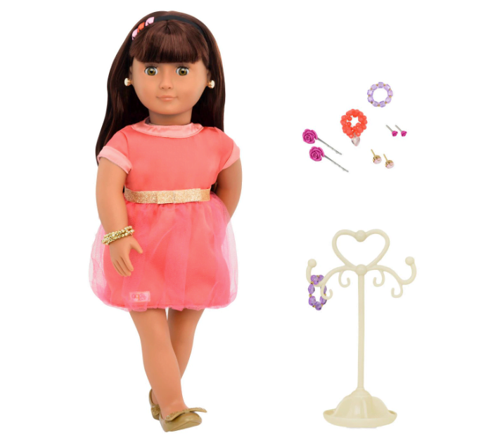 Our daughter loves plushies, building blocks, little character playsets, her 18″ dolls, and playing with her dollhouse!